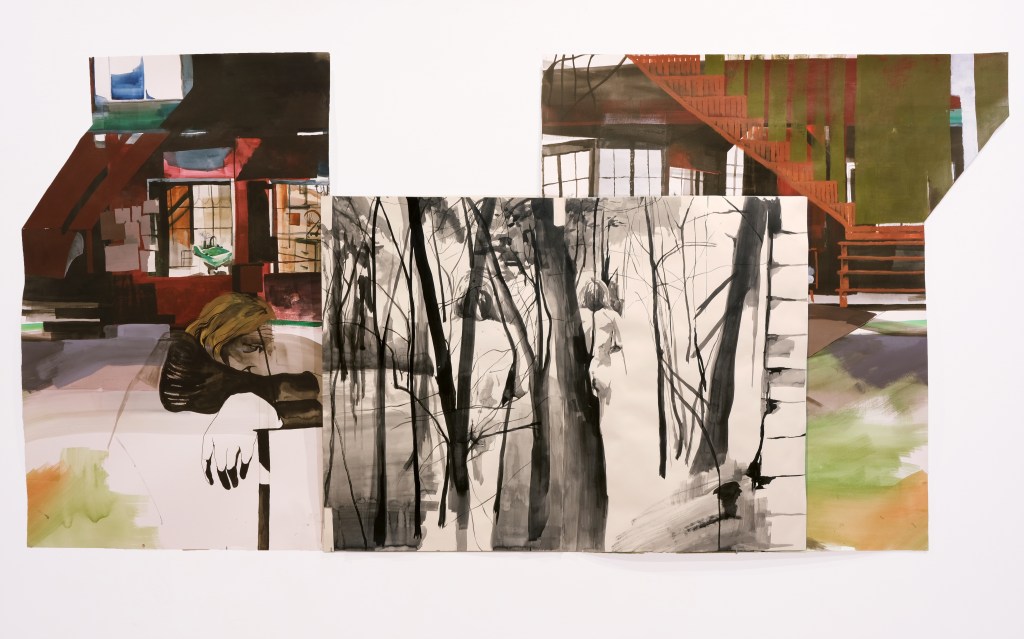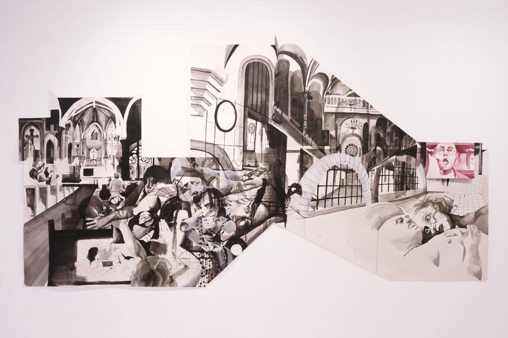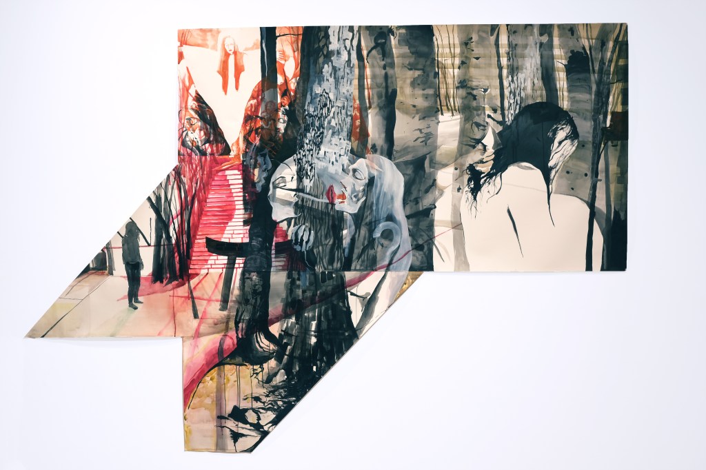 Suffering Is Not An Easy Thing; 12’ x 6.5’; acrylic, ink, and watercolor on paper; 2022