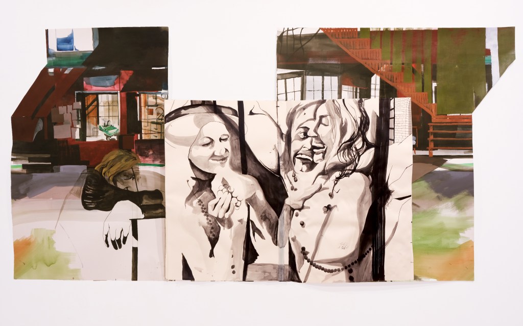 Sisterhood; 8.25’ x 6’; acrylic, ink, and watercolor; 2022