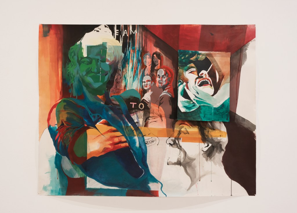 Unstanchable Emissions; 41” x 36”; acrylic, ink, and watercolor on paper; 2022