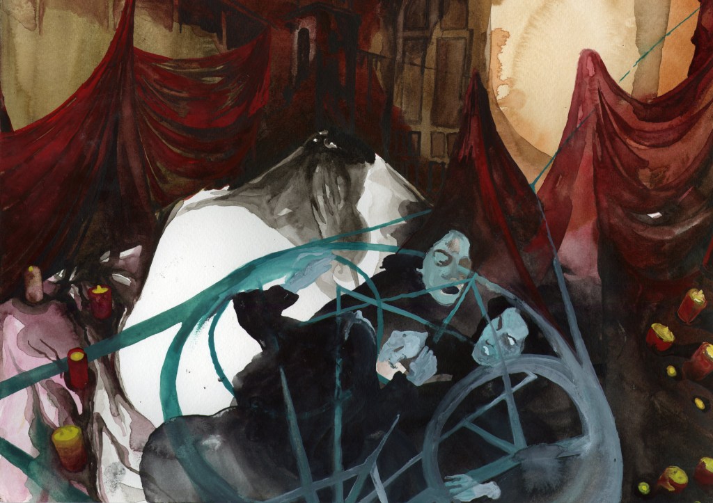 Like Love, We Wait In Ambush; 15″x11″; watercolor; 2024