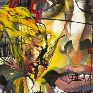 Acrylic, gouache, ink, and watercolor; 16″x16″